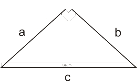 - Die längste Seite (Hypotenuse) wird mit einem Saum stabilisiert
